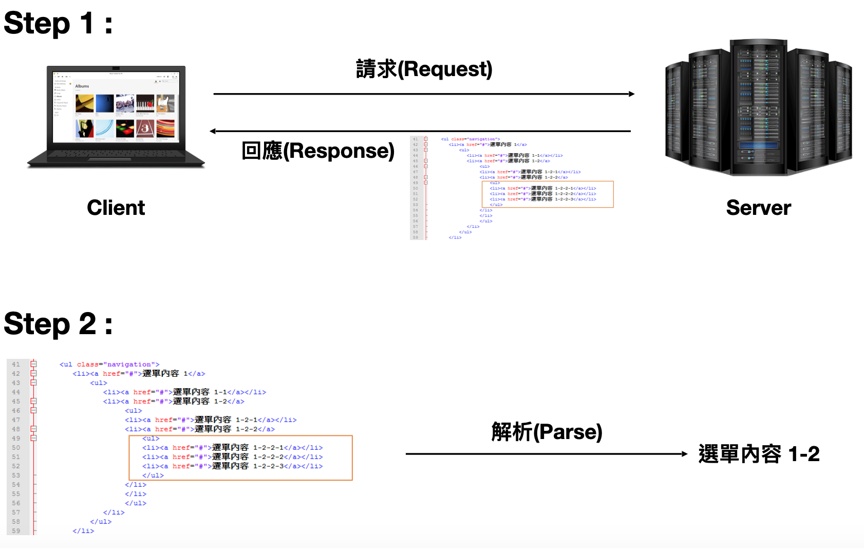 WEB上自動擷取所需資料,解析所需資料轉換為自定義的資料格式,好進行後續處理。HTMLJSONXML